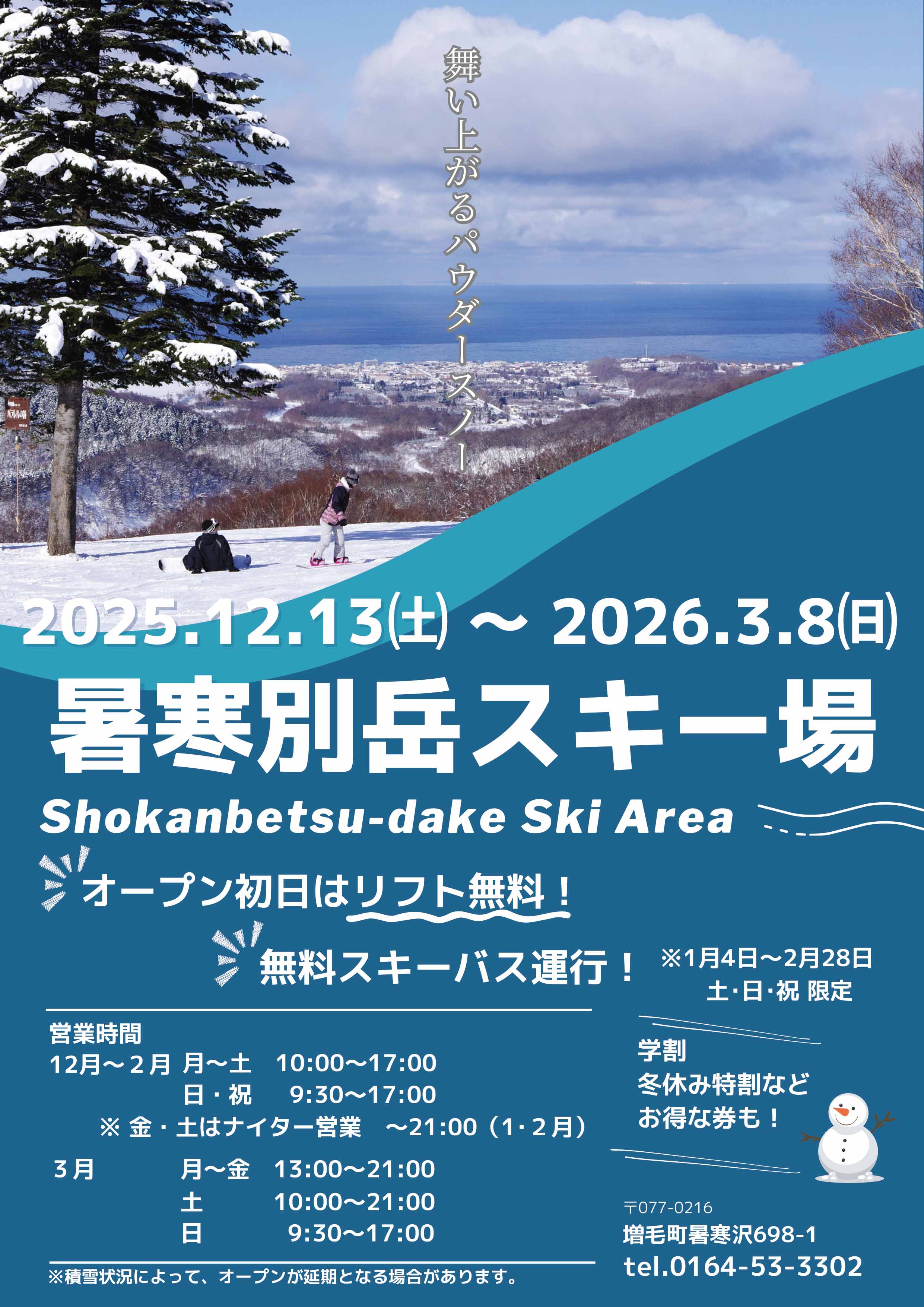 眼前には日本海、背には秀峰・暑寒別岳というテンション上がる絶好のロケーションと、最高の雪質と丹念に整備を施した安全なバーンで、みなさまのご利用をスタッフ一同お待ちしております!!