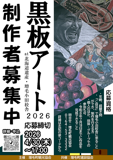 昨年、一昨年と開催し多くの方より好評を得ております。今年も「増毛町にアートの息吹を」との想いで、この “ローカルイベント” を一緒に盛り上げてくれる方、黒板アートにご興味をお持ちの方のご応募をお待ちしております!!(お問合せもお気軽に)