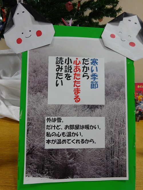 冬の寒さ、温かい部屋、読書する喜び。この3つを感じていただければ幸いです。